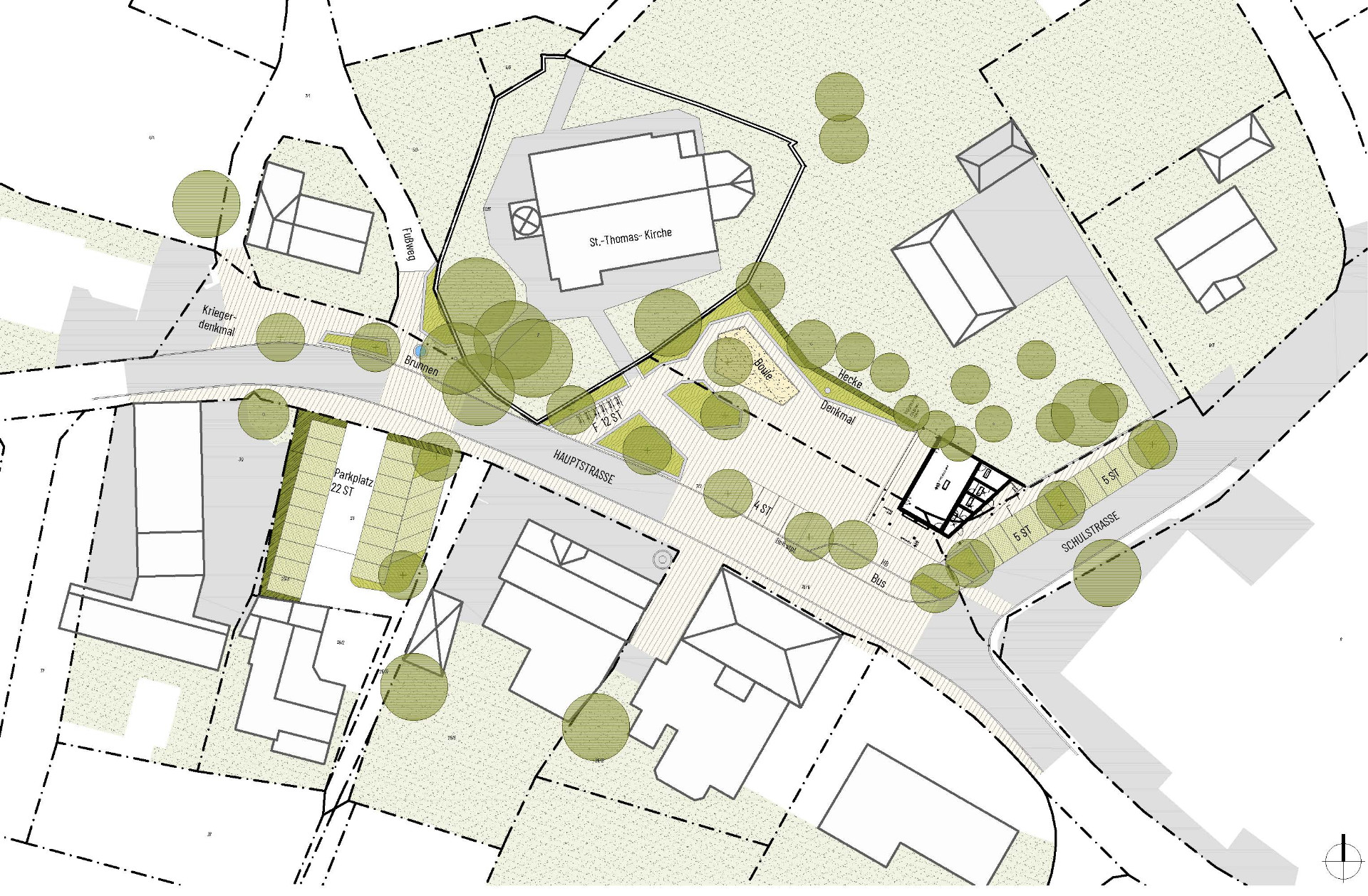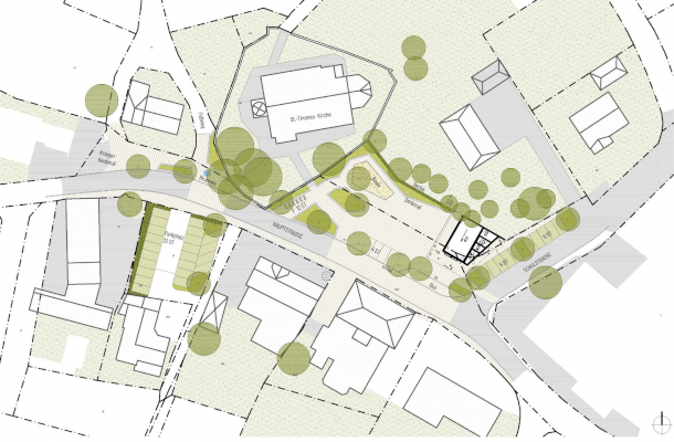 Als Ergebnis einer städtebaulichen Voruntersuchung gestaltet die Gemeinde Adlkofen das Dorfzentrum westlich und östlich der St.-Thomas -Kirche neu. Es entsteht ein Dorfplatz mit Funktionsgebäude mit Aufenthaltsqualität und Platz für Veranstaltungen. Zentrumsnahe Parkmöglichkeiten schaffen kurze Wege zu den wichtigsten Einrichtungen.